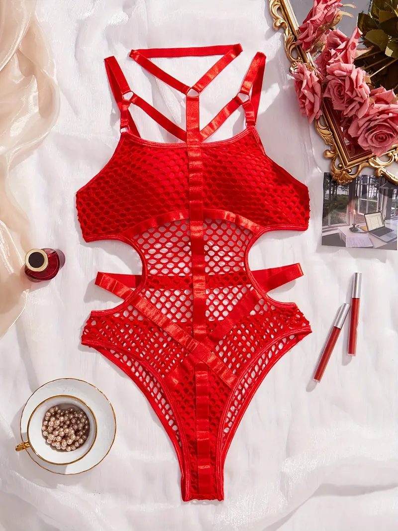 Be the first to review “Red Halter Mesh Bodysuit”
