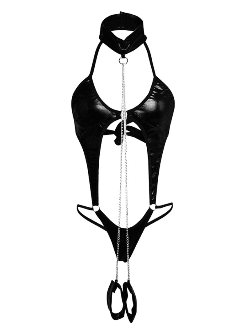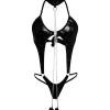 Sexy Black Latex Bodysuit with Handcuffs